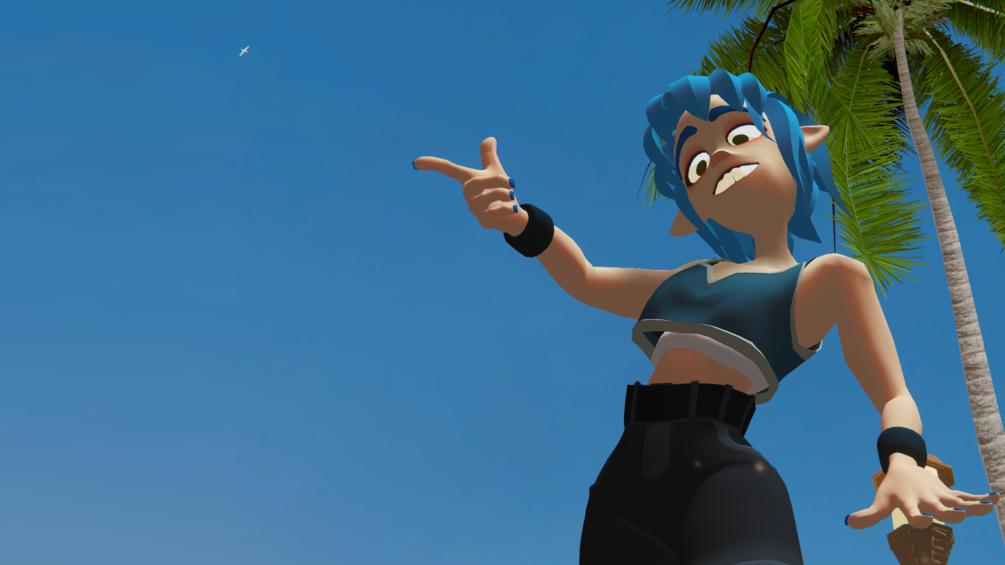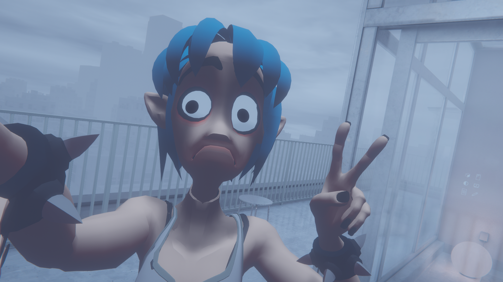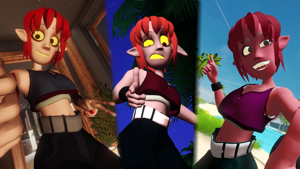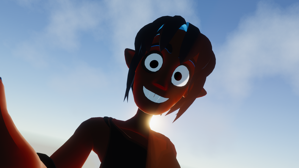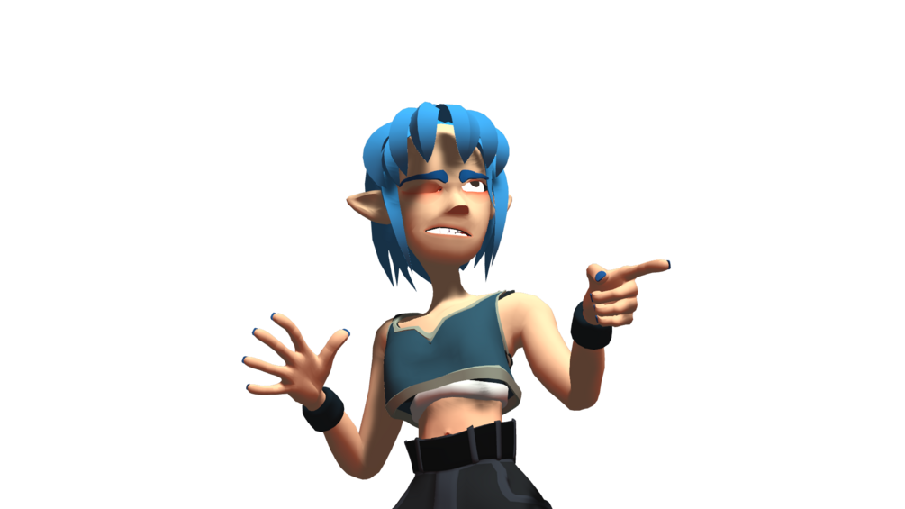A cartoon like 3D character with a more extreme and highly reactive style of facial expression. Bone based, face tracking, with everything custom built from the ground up for VRChat!