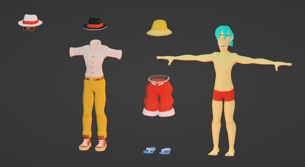 • Swimming trunks, and holiday Shirt Skins + Base Model